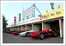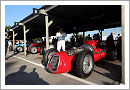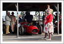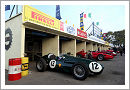 But not just the Jaguar was celebrating its 60th anniversary as the Maserati 250F was introduced the same year. Giving the legendary Juan Manuel Fangio his final F1 title the most successful racer with the trident in its 100 year old history about 16 of this rare single seater were lined-up in Goodwood. Like the Jaguar the Maserati had an own track demonstration parade and even more significant an own paddock display, the replication of the Autodromo di Monza paddocks. Among these cars were several works team cars including chassis 2529 that is considered the most important of all of them. In 1957 Fangio drove this car to maybe his biggest success at the Nürburgring when he set several lap records chasing the leading Ferrari of Hawthorn and Collins to a victory at the green hell. Ten 250F were also entered in the Richmond Trophy for 2.5 litre front engined single seater before 1960 but apart from the Tec-Mec Maserati 250F none of them was really competing for the front positions as they had to give way to the newer Lotus-Climax of Roger Wills, the two Scarab-Offenhauser and even the ill-fated Aston Martin DBR4 although they were successful in the hands of Roy Salvadori and Sir Stirling Moss at the very same place in 1955/56.
