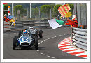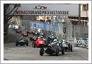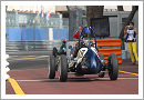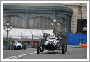 More crowded was the appearance of the sports cars in Class C, limited to the year to 1955. With 40 cars this was one of the biggest fields of the weekend leaving just little room on the track. As the qualifying times ranging from 2 minutes from the fastest Jaguar C-Type to more than 2 ½ minutes from the back markers the race promised a lot of lapping during the 30 minutes, but apart from minor accidents including a bump from the second Jaguar C-Type of Nigel Webb to the Ferrari 340 MM of Roberto Crippa most of the high priced treasures came home unharmed. Right from the start of the race on Sunday afternoon the golden Jaguar C-Type of Alex Buncombe pulled away from pole position just followed by the Cooper Bristol of John Ure in about 10 second distance and the rest of the field over a minute back. In the centenary year Maserati was very well presented with several race models ranging from the two litre versions of the A6GCS and 200S to the 3 litre 300S, at the end the 150S/200S of Michael Willms was fastest of them on a fourth place just in front of the 300 S of Henri Chambon. Ferrari was presented by two 225 S of the type that won the 1952 sports car race here and a third of this rare coupés could be seen parked in front of the Fairmont Hotel.
