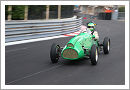 One of the most entertaining races was the era of the F1 and F2 cars before 1961, when most of them were still front engined. After a second place in first practice German GT driver Frank Stippler, who is very well known for driving historic races in the last years, had to skip the second practice due to technical problems but his time was good enough for a sixth starting place. After a repair overnight he attacked the BRM in front of him coming home second behind the Cooper T51 Climax of Roger Wills. With 6 cars within 10 seconds after 8 laps this was the closest race of the weekend.
