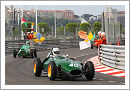 Even less fortunate was the ex Jacky Ickx Ferrari 312 B2 in the race of Class E, the grand prix cars of the years 1966 to 1972. In this period one of the star lots at the RM Auction in Monaco, the Brabham BT20 won in 1967 in the hands of Denis Hulme followed by three Lotus victories with the Type 49. One of this Lotus 49 originally driven by Jim Clark to victories in the Netherlands, Belgium and USA was entered in this race but ended in the wall of St.Devote after loosing his wheel in the first practice session. It was another Lotus, the Type 72 entered by the Lotus Classic Team driven by Katsuaki Kubota who both set the pole time in front of Michael Lyons in the Surtees TS9 and winning over Duncan Dayton in the Brabham BT33. The Lotus is being known as one of the first cars with sponsor livery instead the team colours and the black-gold JPS livery is without doubt one of the best looking of an era when tobacco advertisement was normal. The race was ended two laps early after a red flag incident on the start-finish straight when a misunderstanding between the Ferrari 312 B2 and a March 721 blocked the straight. Being shown the blue flags the Ferrari changed the line overseeing the March who tried to lap the Ferrari on the inside, with just two more laps to go the race was not restarted.