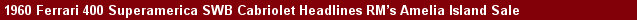 “It’s an absolute privilege to have been entrusted with the sale of 1945 SA at our upcoming Amelia Island sale. As our recent Arizona sale showed, there’s a continued strong appetite for great open-top Ferraris, and this 400 SA is certainly among the best of its breed,” says Gord Duff, Car Specialist, RM Auctions. “The true definition of sporting elegance, 1945SA combines stunning design with high performance. Visually, it is beautiful in every respect. Its unusual and striking color combination helps distinguish it from its peers, enhancing its desirability, not to mention its various other unique details, from the chrome trim on the hood to its flush-mounted door handles. I’ve had the pleasure of driving the car and can attest it is a fantastic, turnkey driving example.”