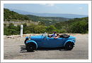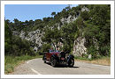 Today the classic car calendar features hundreds of different events ranging from social events, show events, race events and road rallies, most of them restricted to certain ages depending on the name giving historical event, the international collectors have numerous choices to spend their limited spare time with their toys. What most of them have in common is that they joined a marque club years ago the get access to the knowledge of specialists and likeminded connoisseurs of specific models they own and they are interested in. Apart from the exchange of experience some clubs are more active than others and the Bugatti Club was always a real drivers club as one can see having an own hill climb in England for example. So it is no surprise that the International Bugatti Meeting is more a drivers meeting than many other meetings and this year was certainly not an exception. Limited to about 100 hundred cars to suit the accommodations the IBM was booked well in advance and the organizers even had the thankless task to refuse some requests but on the other hand it gave them the possibility to put together an entry list according the intended itinerary. When looking over the program of the following days a total of about 1500 km within 6 days did not look that much but after seeing the cars arriving on Sunday at the Domaine the Chateau Chaval in Gréoux-les-Bains it became clear that the roads would become very adventurous as just very few of the larger touring cars of the Type 46, 49, 50 or 57 found their way to the Provence, the main share was reserved to the very agile Grand Prix car and the small Type Brescia. In the next days the entrants would not just face small and twisty country roads but some small village passages of not much more than 2 meters wide.