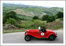 After a very early start at 6 am the cars drove the morning towards one of people’s favourites, the climb up to Radicofani. Normally this is the most beautiful part of the day as it separates the convoy from the normal traffic when the roads are closed purely for the classic cars for one of their special stages. Last year the passing of the small church was blocked due to work on the gas pipes but this year the entire main road at the bottom of the hill was closed for construction so all the traffic including the lorries had to take the climb over the hill. One could imagine the chaos down from Radicofani when the racing classics met the commercial traffic on the twisty roads producing a huge mess when some impatient drivers again opened lanes where was no room for them. But finally all the cars made it to their special stage before Buonconvento.
