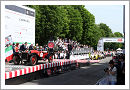 Most notable was the display of Mercedes-Benz celebrating the 60th anniversary of Sir Stirling Moss record run at the Mille Miglia 1955 in the most successful year of motorsport of the company with the three-pointed star winning not only the F1 championship but also the Wold Sportscar Championship with the legendary 300 SLR. No less than three of the straight-eight SLR from the factory museum were lined up in the streets of Brescia wearing the Mille Miglia race numbers of Moss, Fangio and Herrmann (although just one of them actually drove the original MM) and the two remaining works drivers Moss and Herrmann even opened this year’s race from the ramp joined by Susie Wolff in the third car. At about 3pm the first cars, traditionally from the first winning marque OM were sent off for the 1000 miles in the next three days. Due to the sheer amount of cars there was not much time apart from a few empty phrases to introduce the cars and their drivers but most of the cars did not need an introduction anyway being regular entrants of the race.