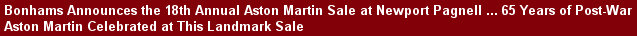 Bonhams Announces the 18th Annual Aston Martin Sale at Newport Pagnell ... 65 Years of Post-War A...