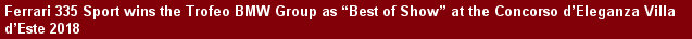 Ferrari 335 Sport wins the Trofeo BMW Group as “Best of Show” at the Concorso d’Eleganza Villa d’Este 2018