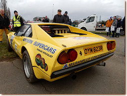 pair of yellow 308 GTBs in rally trim, one being the venerable original fibreglass bodied example of Tony