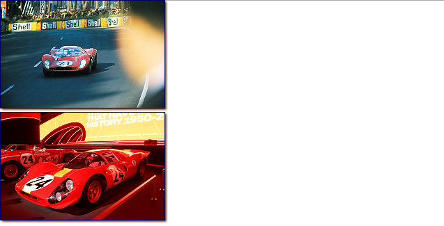Le Mans 24 h 1967The 412 P (330 P3/4) s/n 0846 was driven by Chris Amon and Nino Vaccarella. In the picture, Vaccarella leads the Chaparral 2F of Jennings/ Johnson through Les Esses