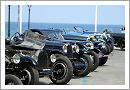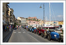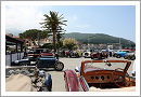 The cars took the coastal road around the west of the isle through the mountains. The road is sometimes very tiny and twisty so that it is hard work behind the wheel of the larger touring cars but it must be endless fun at the wheel of one of the smaller race cars. One can see why these cars were so successful at hill- climbs in their time. After 2 hours of best enjoyment the cars arrived at village of Marciana Marina where they were lined up at the seafront. After lunch the cars headed back to Portoferraio where they were once more displayed in the harbour. The crews used the time waiting for the passage back to taste Italian ice cream that was sold at the pier before boarding to the ferry. Back in the village the day ended once more sitting together over a friendly bottle of wine.