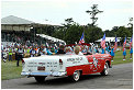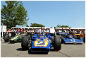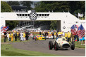 On the weekend before the American Independence Day the centenary was celebrated in style. On all three days the 5 classes of indy cars where lined up on the straight in front of Goodwood house accompanied by a marching band giving an impression of the supporting program of the original race. The national anthem was played by Jeff Kollman on his guitar on top of Goodwood house and the very modern interpretation took a smile on the face of many of the present drivers like Bobby Rahal, Bobby and Al Unser, Eddy Cheever, Dario Franchitti and Helio Castroneves to name a few. Altogether 14 winners of this legendary race were seen in some of their cars during the weekend but also in historic cars from the first years when the race was still driven on bricks. Josh Hill drove a replica of the Lola-Ford in which his grandfather Graham Hill won the race in 1966, the cars of the modern era entertained the crowds with some donuts on the narrow road.