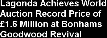 With 106 motor cars and 172 lots of automobilia, Bonhams Goodwood Revival Sale was the most successful yet, achieving an all time high of £15.4 million.