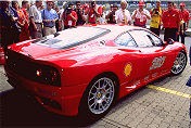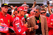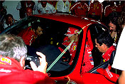 Michael Schumacher giving his comments about the 360 Modena Challenge to star-reporter and motorsport insider Rainer Braun