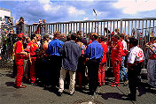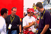 Again, Michael Schumacher is in the middle of the crowd (now consisting of journalists exclusively)!
