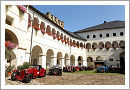 The first day saw a 181 km tour through the Carinthia region with two castles on the program and the leg was dominated by the drive through several huge maize fields. The first destination in the morning was the castle complex of Schloß  Hochosterwitz, a fortress dating back to the 9th century that was developed over the next centuries to its today´s appearance. Being in the same family ownership for the last 440 years the current landlord insisted on welcoming the rally personally with an aperitif in his own residence before leading the group in a 1904 Simplex to the nearby castle. Being arrived there the participants had the choice to take an elevator not for the faint-hearted or taking the long way up through the 14 gates that secured the fortress in the past. The weary climbing was rewarded with a spectacular view over the surrounding area and a small beer garden in the inner courtyard invited the guests to stay. After a visit to the museum with period armours the journey led to the lunch stop at Schloß Straßburg were a buffet was served in the old masonry whereas the cars were lined up in the patio before making their way back to the Wörthersee.