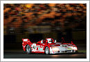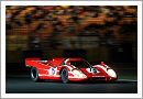 When looking back at the last weekend the decision not to race the original chassis 23 (assumed the rumours are true) was without doubt not a bad decision as non of the three entered cars saw the chequered flag on Sunday afternoon. Just as in the modern race the cars have to compete with a lot of smaller classes of the same era and so the 917 were racing smaller 2 litre cars with less than half of the power output. When looking at the crashes of the last years in the modern race it is easy to see that most of them are results of misunderstandings between front runners and slower cares during lapping. With 400 cars and several hundreds of drivers in action the difference in experience at the LMC is even far more distinctive ranging from pure amateur gentlemen drivers to Le Mans legends as 5 times champion Emanuele Pirro and Derek Bell, so misunderstandings are a logical consequence. What made things even worse were the changing weather conditions with several showers during the 24 hours leaving some drivers over challenged with the slippery track conditions. With a total length of 13,880 km the circuit is long enough to have different weather conditions even on different places of the track so the cars might leave the pits in the dry to drive in a shower on the Hunaudiere to enter a fully wet section between Mulsanne and Arnage. In these conditions some of the less experienced drivers are too engaged to keep their car on track to watch out for faster cars so even experienced drivers are not spared from risky moments. The Hippie-livered 917 was taken out during the morning race on Sunday in Terte Rouge, the Gulf-livered driven by 1983 Le Mans winner Vernon Schuppan even on Saturday reportedly without own mistake.