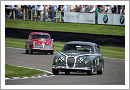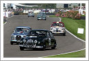 Usually the Sussex Trophy also features several Jaguar D-Types every year but for the 60th anniversary of the Coventry racer the Goodwood team had something special in mind. Besides the usual races the special parades are always a great attraction including the Silver Arrows or Ferrari GTOs in previous years but like last year with the 50th anniversary of the Ford GT40 the race schedule even featured a single car D-Type race, the Lavant Cup. 60 years ago Jaguar introduced the very advanced design of the aluminium monocoque sports car with the disc breaks that should win Le Mans for 3 years. In its debut appearance at La Sarthe the short nose trio included top driver Stirling Moss who did not finish because of the new disc brakes leaving Duncan Hamilton and Tony Rolt top finisher after 24 hours just a lap short of the winning Ferrari 375 Plus. Beside the prototype (XKC401) two of the three 1954 Le Mans entries (XKC402 and XKC403) where lined up in the high speed demonstration parade but like several other significant examples they were not entered in the actual race as was the very last D-Type produced, the Ecurie Ecosse long nose 1957 LM winning chassis XKD606 brought to Goodwood from the Louwman Museum. With about two dozen D-Type and five XKSS this might have been the biggest gathering of this type in recent years but certainly even the prestigious events like Goodwood cannot overact the fact that most of these high valued cars are not raced anymore in this crazy market and so at the end just about half of them where lined up for the Lavant Cup including one or the other replica. Still an impressive sight when a single marque (or car) field is blasting down to Madgwick the race itself did underperform a little as just a few cars where actually wheel-to-wheel racing whereas most of them soon found their own pace leaving few battles for positions but still a pure D-Type grid will remain in memory for quite a while.