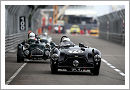The first cars on the track were the pre-war cars from the late 1920s and the early 1930s, namely Bugatti, Alfa Romeo and ERA. In the last editions the light and nimble but yet powerful ERA seemed to be unbeatable running on all the podium places but this year two Alfa Romeo P3 were very strong competition, especially the one driven by Matthew Grist. Being son of the renowned Alfa restorer Paul Grist Matthew certainly knows how to drive this car and well from the beginning he was fighting with the fastest of the ERA, the Type B of Paddins Dowling for the victory. The ERA set fastest time in qualifying but it was the Alfa taking the chequered flag in the closest of all races with just a margin of 0.2 sec over the ERA in a photo finish. Pre-war races always have a very own atmosphere, although they are also driven hard the competitors are very respectful leaving each other enough room because a crash in these cars without any safety belt rarely ends without injuries. So it is no surprise that this category was one of the very few without a safety car phase or even a red flag during the entire weekend, something that could not be said from all classes. Another reason was certainly the small number of cars with just a dozen leaving enough room on the track.