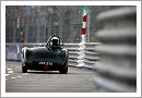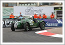More crowded was the appearance of the sports cars in Class C, limited to the year to 1955. With 40 cars this was one of the biggest fields of the weekend leaving just little room on the track. As the qualifying times ranging from 2 minutes from the fastest Jaguar C-Type to more than 2 ½ minutes from the back markers the race promised a lot of lapping during the 30 minutes, but apart from minor accidents including a bump from the second Jaguar C-Type of Nigel Webb to the Ferrari 340 MM of Roberto Crippa most of the high priced treasures came home unharmed. Right from the start of the race on Sunday afternoon the golden Jaguar C-Type of Alex Buncombe pulled away from pole position just followed by the Cooper Bristol of John Ure in about 10 second distance and the rest of the field over a minute back. In the centenary year Maserati was very well presented with several race models ranging from the two litre versions of the A6GCS and 200S to the 3 litre 300S, at the end the 150S/200S of Michael Willms was fastest of them on a fourth place just in front of the 300 S of Henri Chambon. Ferrari was presented by two 225 S of the type that won the 1952 sports car race here and a third of this rare coupés could be seen parked in front of the Fairmont Hotel.