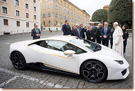 painted in Bianco Monocerus with Giallo Tiberino. Lamborghini unveiled the one-off car in the Vatican during a