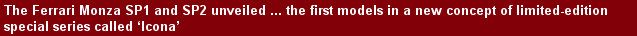 The Ferrari Monza SP1 and SP2 unveiled ... the first models in a new concept of limited-edition special series called ‘Icona’