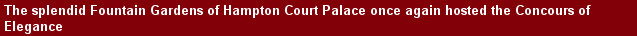 The splendid Fountain Gardens of Hampton Court Palace once again hosted the Concours of Elegance, presented by A. Lange & Sohne, over the weekend of 06 – 08 September. It featured a broad ranging display of some 75 cars in the concours for attendees’ delectation, together with a large number of club and trade displays to add to the mix, totalling some 1000 cars of all ages. Late summer sunshine over the three days, made it all the more enjoyable for participants and visitors alike. The judging format followed that of previous years with entrants casting their vote for the Best of Show award, obviously not being able to vote for their own car.