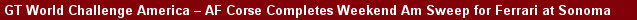 GT World Challenge America – AF Corse Completes Weekend Am Sweep for Ferrari at Sonoma