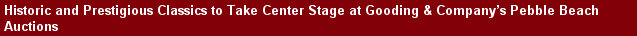 Historic and Prestigious Classics to Take Center Stage at Gooding & Company’s Pebble Beach Auctions