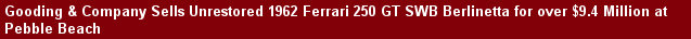 Gooding & Company Sells Unrestored 1962 Ferrari 250 GT SWB Berlinetta for over $9.4 Million at Pebble Beach