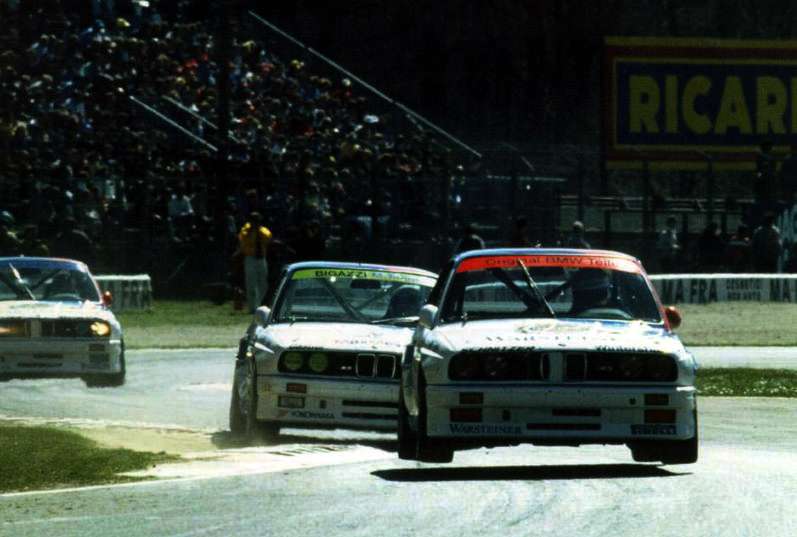 Dieses Foto aus Monza bereitet Emanuele bis heute Kopfzerbrechen, den er hat noch keine Antwort darauf gefunden, warum sich der M3 hier mit allen vier Rädern in der Luft befindet. Die Kerps sind in der Schikane an sich nicht hoch genug, um ein Auto in die Luft zu katapultieren. |